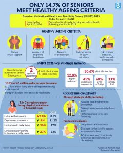 According to the NHMS 2025, only 14.7% of senior citizens meet the criteria for healthy ageing, based on a survey of approximately 7,528 respondents.