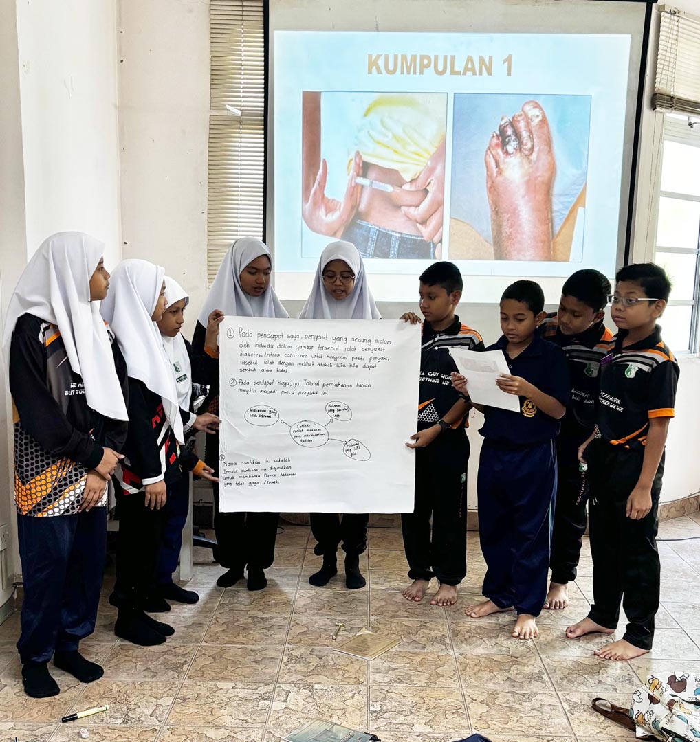 After the discussion session, each group presented their work for about five to seven minutes. The students shared their real-life experiences regarding the cases of obesity and diabetes. Some even gave advice to their friends during the presentation on how to lead a healthy lifestyle. Questions were also directed to other groups to encourage participation and discussion among the students.