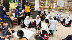 The programme then continued with a group activity conducted by Ms Kumuthasshri, CAP’s research officer. The students were divided into three groups and each group received an activity sheet containing a picture and three related questions. The students were given 15 minutes to discuss the questions and present their ideas creatively on mahjong paper.