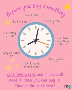 > RESIST the temptation of sales and discounts. Ask yourself, would you buy the item at its full price? If the answer is no, the discount is just the bait. Terms like “limited time only!” or “stock running out!” are a psychological tactic to rush your decision, not a genuine reason to buy.