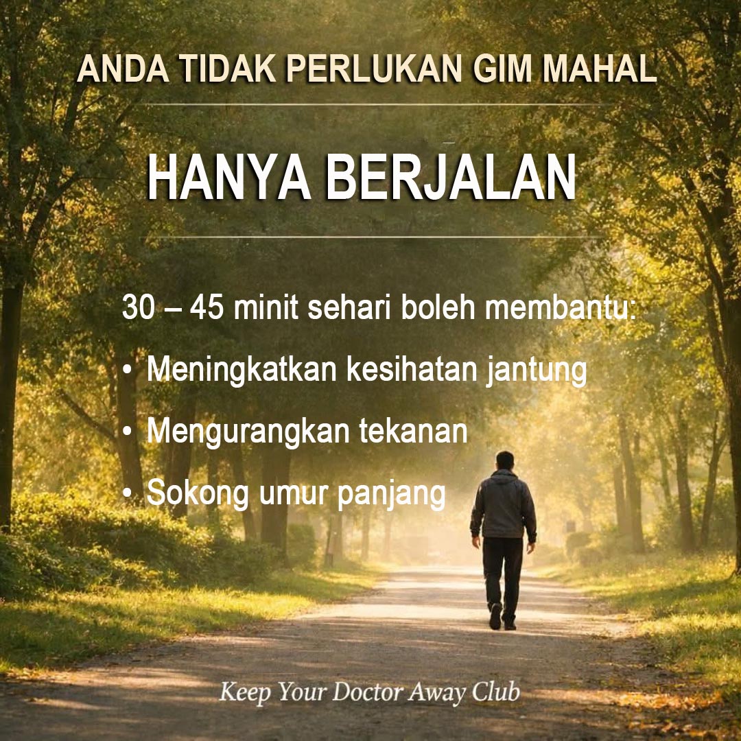 Kebanyakan orang berpendapat untuk menjadi sihat memerlukan keahlian gim yang mahal. Tetapi kebenarannya adalah lebih mudah. Hanya berjalan 30 – 45minit sehari boleh mengubah kesihatan anda. Ia boleh: Menguatkan jantung anda Mengurangkan tekanan dan kebimbangan Menyokong umur panjang dalam jangka panjang Sesetengah populasi paling sihat di dunia tidak menghabiskan masa berjam-jam di gim –...