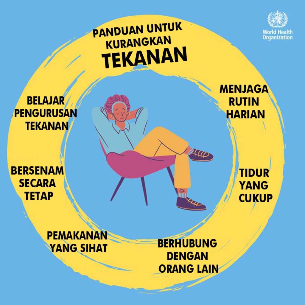 CARA ATASI TEKANAN Lai Cheng Mei 5, 2025 0 Comments Jika anda mengalami tekanan, anda tidak bersendirian. Berikut adalah beberapa panduan untuk membantu anda mengatasi tekanan. Sumber: WHO, Western Pacific
