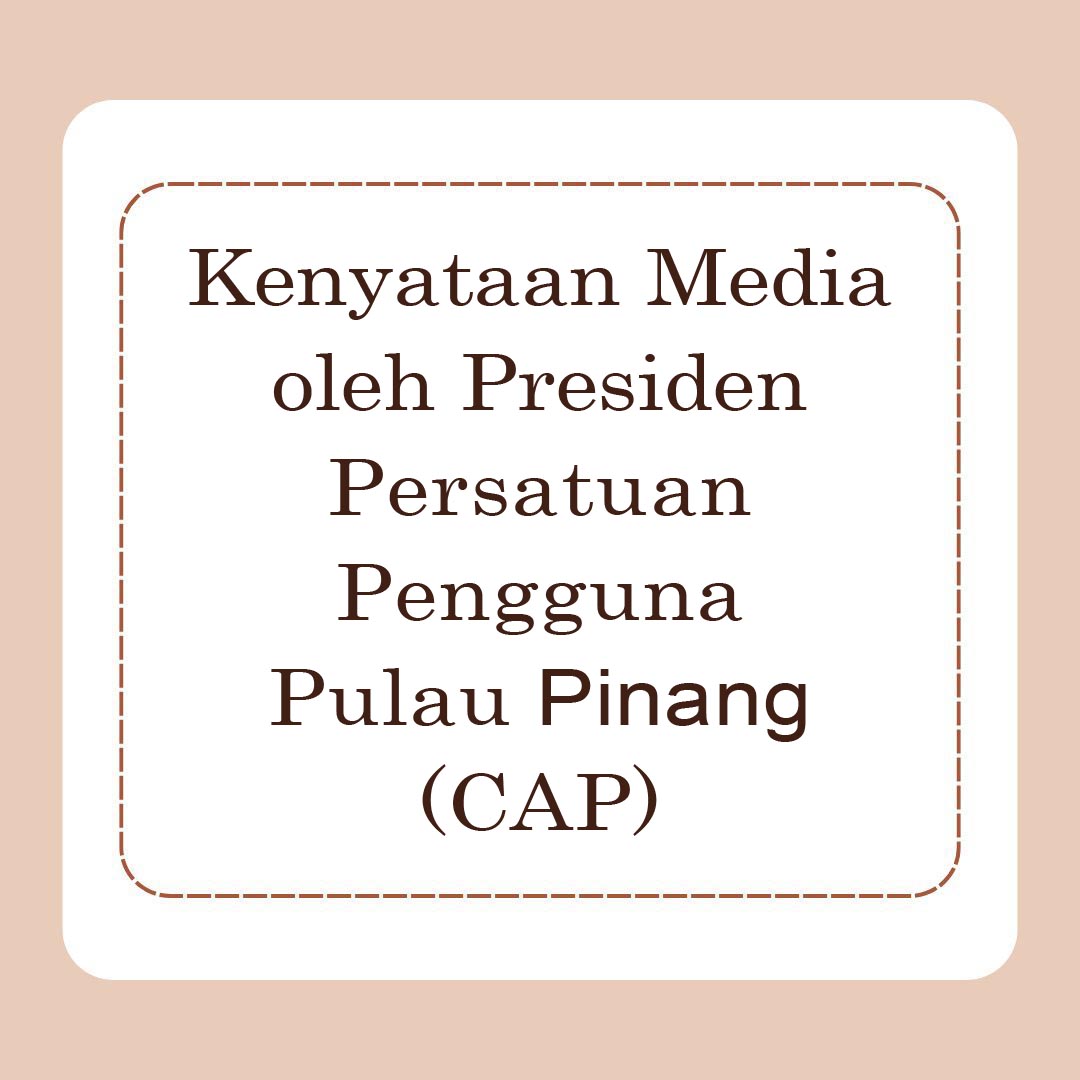Kenyataan Media oleh Presiden Persatuan Pengguna Pulau Pinang (CAP)