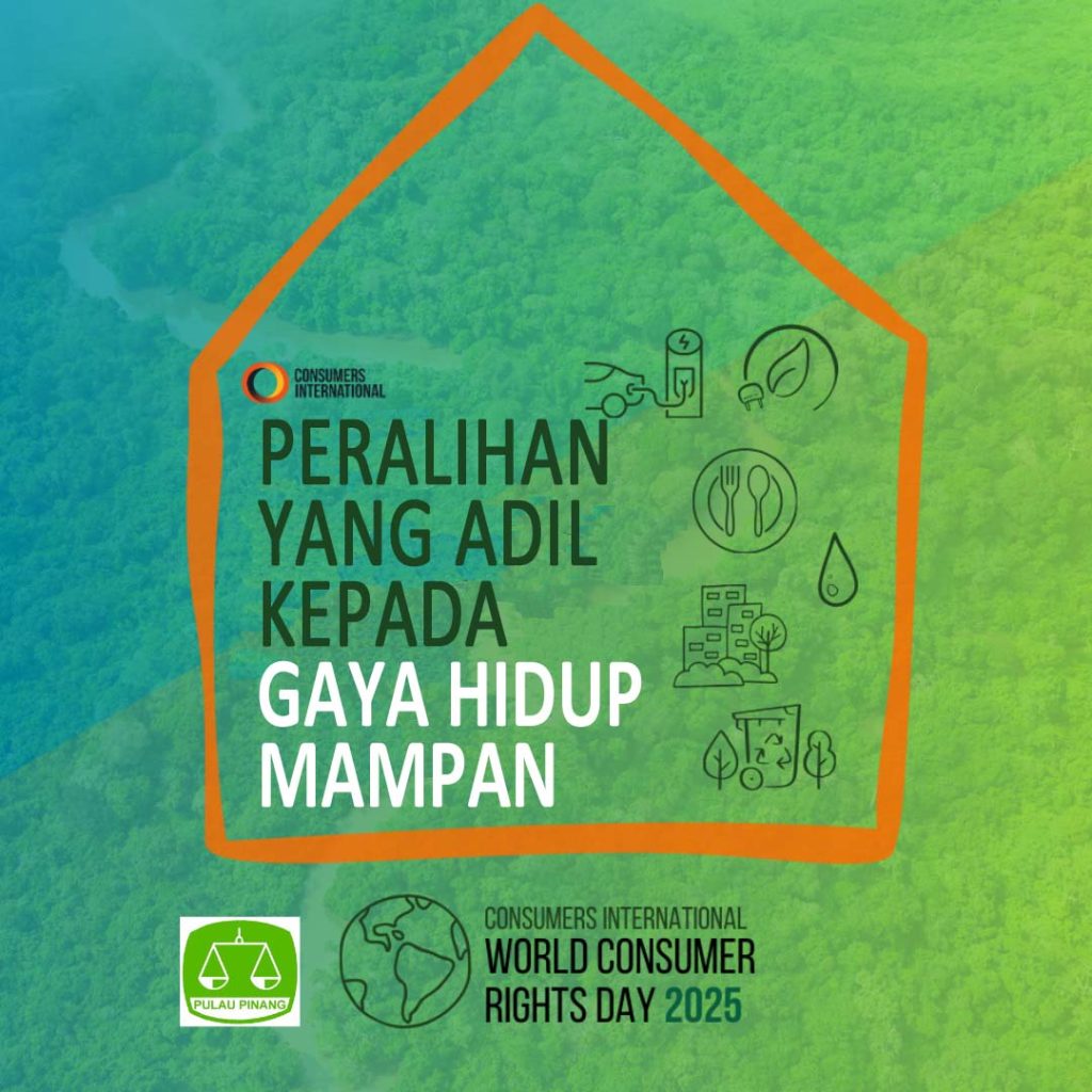 Sempena Hari Hak-hak Pengguna Sedunia, Persatuan Pengguna Pulau Pinang (CAP) turut menyertai pergerakan pengguna global untuk menggesa peralihan yang adil kepada gaya hidup mampan. Bersama-sama, kita menyoroti keperluan dan hala tuju untuk menyediakan pilihan yang mampan, berpatutan dan boleh diakses untuk orang ramai dan planet ini.