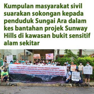 Kumpulan masyarakat sivil suarakan sokongan kepada penduduk Sungai Ara dalam kes bantahan projek Sunway Hills di kawasan bukit sensitif alam sekitar