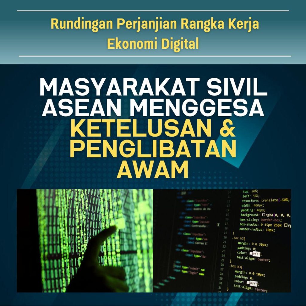 Pertubuhan masyarakat sivil dari seluruh ASEAN mengulangi gesaan untuk lebih ketelusan dan penglibatan awam yang bermakna dalam rundingan DEFA yang sedang berlangsung, perjanjian perdagangan serantau utama yang bertujuan untuk mewujudkan peraturan digital yang mengikat dan boleh dikuatkuasakan dalam kalangan Negara Anggota ASEAN.