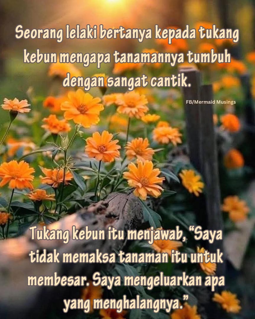 Rahsia untuk berkembang, sama ada di taman atau dalam kehidupan, bukanlah mengenai usaha tanpa henti, tetapi mengenai memupuk keadaan yang sesuai bagi pertumbuhan. Sama seperti seorang tukang kebun menjaga tanah dengan teliti, membuang rumpai dan halangan, kita juga mesti mengenal pasti dan melepaskan perkara yang menghalang kemajuan kita.