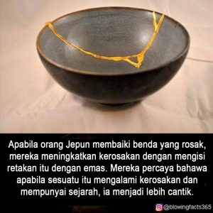 Setiap yang pecah adalah unik dan bukannya membaiki benda seperti baharu, teknik berusia 400 tahun itu sebenarnya menyerlahkan “parut” sebagai sebahagian daripada reka bentuk. Mangkuk mungkin kelihatan pecah, kepingan bertaburan, tetapi ini adalah peluang untuk meletakkannya kembali bersama-sama dengan jahitan emas. Ia akan menjadi sesuatu yang baharu, unik dan kuat.