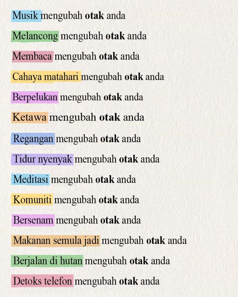 Berikut adalah beberapa tindakan yang boleh mengubah semula otak kita untuk memperbaiki kehidupan kita.