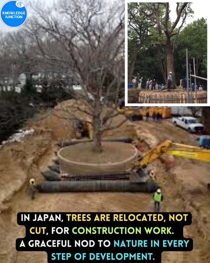 In Japan, the reverence for nature runs so deep that even trees over a century old are not carelessly cut down for construction – rather, they are carefully and respectfully relocated. One remarkable example is the relocation of a 150-year-old camphor tree in Osaka, where engineers and arborists worked together for months to ensure the tree’s survival during a major station renovation.