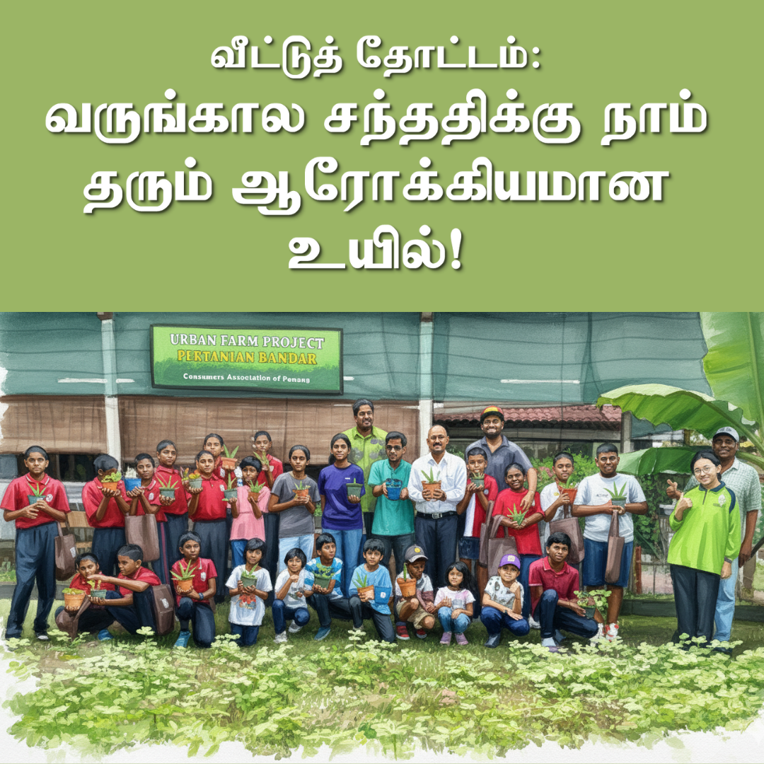2026-ஆம் ஆண்டிற்குள் நாம் அடிஎடுத்து வைக்கும் வேளையில், அனைத்து மலேசியர்களும் “வருங்காலத்திற்காக விதைகளை விதைப்போம்” என்ற எளிமையான அதேசமயம் வலிமையான உறுதிமொழியை ஏற்குமாறு பினாங்கு பயனீட்டாளர் சங்கம் (CAP) அழைப்பு விடுக்கிறது. உங்கள் சொந்த காய்கறிகளையும் மூலிகைகளையும் வளர்ப்பது என்பது புதிய மற்றும் ஆரோக்கியமான உணவைப் பெறுவதற்கான ஒரு நடைமுறை நடவடிக்கை மட்டுமல்ல; அது சுயசார்பு, மீள்திறன் மற்றும் நமது சமூகம் மற்றும் சுற்றுச்சூழலின் நலனுக்கான ஒரு முதலீடாகும். இந்த சிறிய ஆனால் அர்த்தமுள்ள செயலைச் செய்வதன் மூலம், குடும்பங்கள் சத்தான உணவை வளர்ப்பது மட்டுமின்றி, பொறுப்புணர்வு, பூமியின் மீதான அக்கறை மற்றும் விழிப்புணர்வுடன் கூடிய வாழ்க்கை முறை ஆகிய விழுமியங்களையும் வளர்க்க முடியும்.