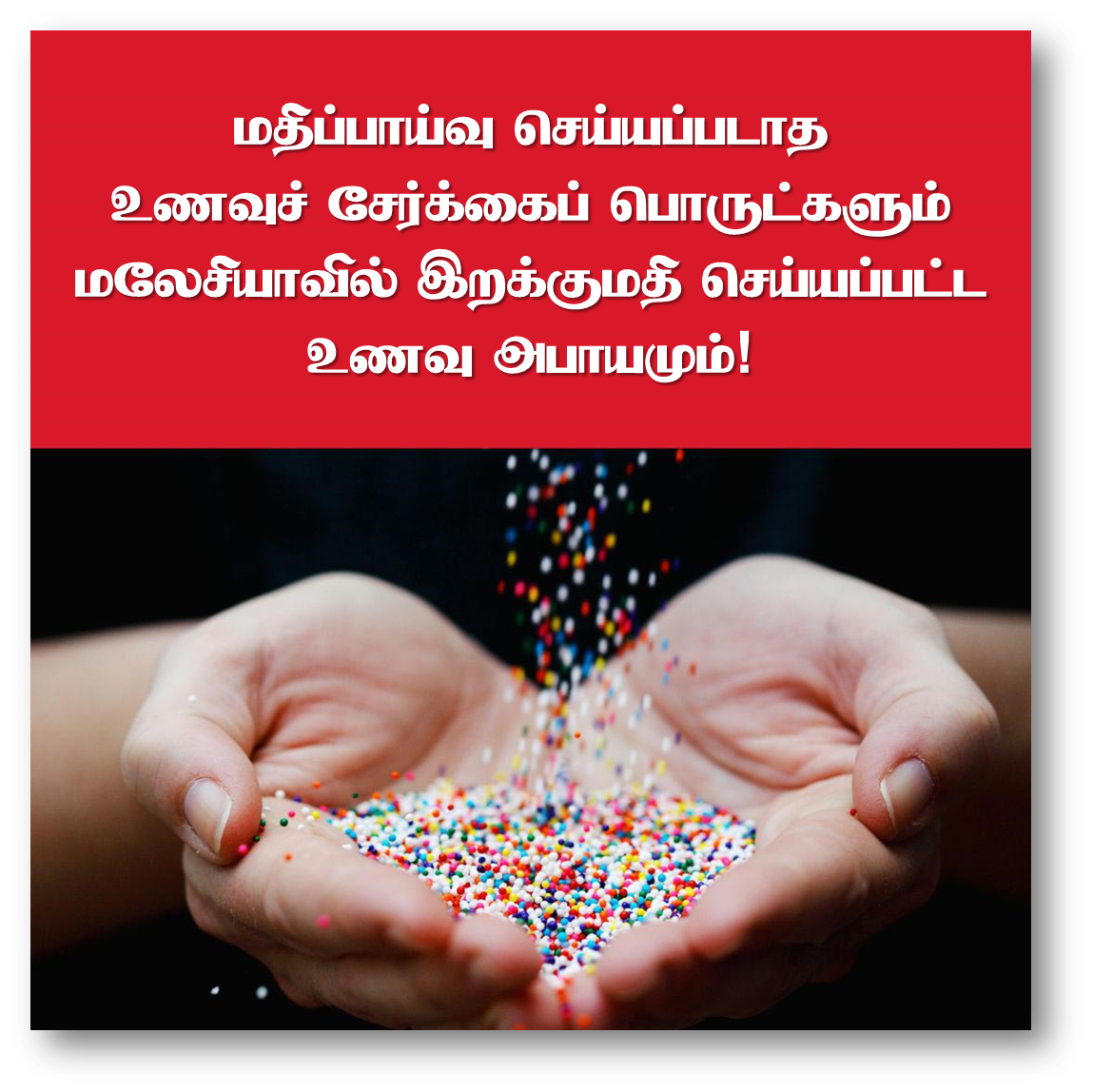 மதிப்பாய்வு செய்யப்படாத உணவுச் சேர்க்கைப் பொருட்களும் மலேசியாவில் இறக்குமதி செய்யப்பட்ட உணவு அபாயமும்! எச்சரிக்கையாக இருக்கும்படி பயனீட்டாளர்களுக்கு பினாங்கு பயனீட்டாளர் சங்கம் நினைவூட்டல்!