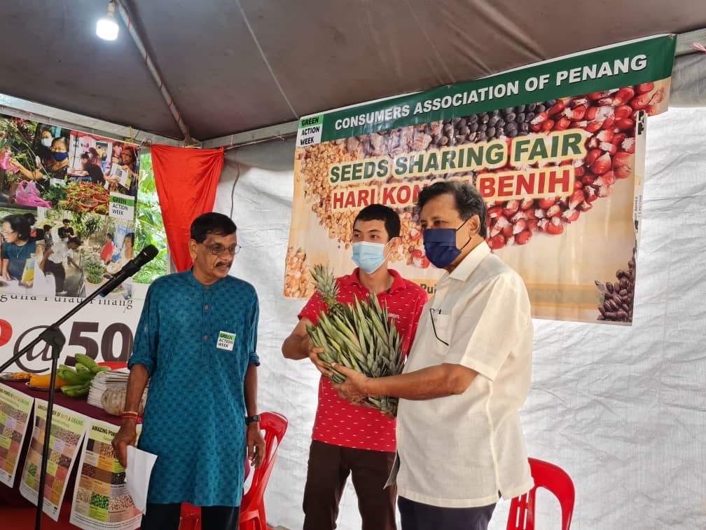Cheah Chung Yung, farmer from Kelantan presenting Mr Mohideen an organic pineapple fruit