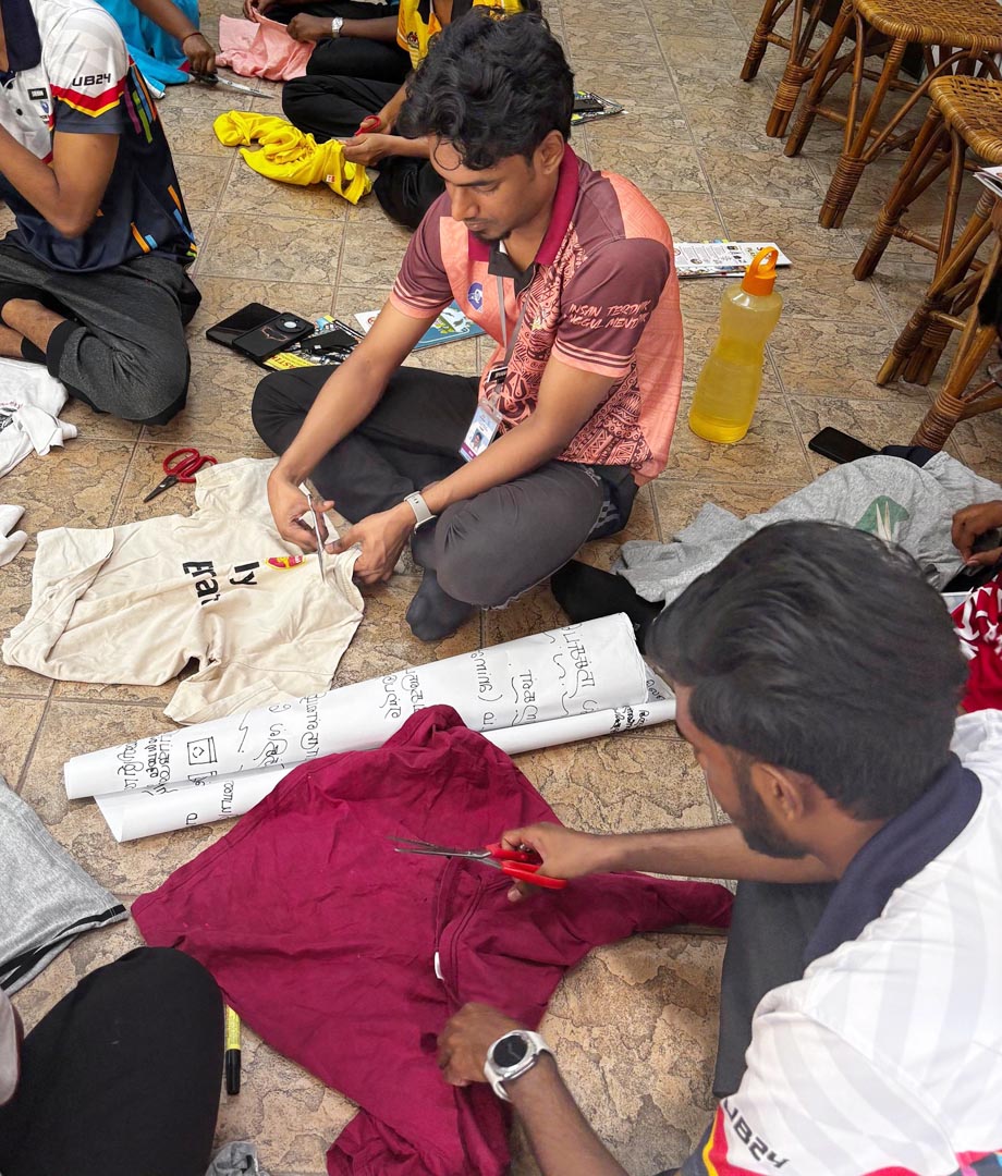 随后,槟消协职员Theeban先生主持实践活动,指导实习教师利用旧T恤制作环保购物袋,作为塑料袋的替代品。参与者反应热烈,并成功制作出实用的环保袋。