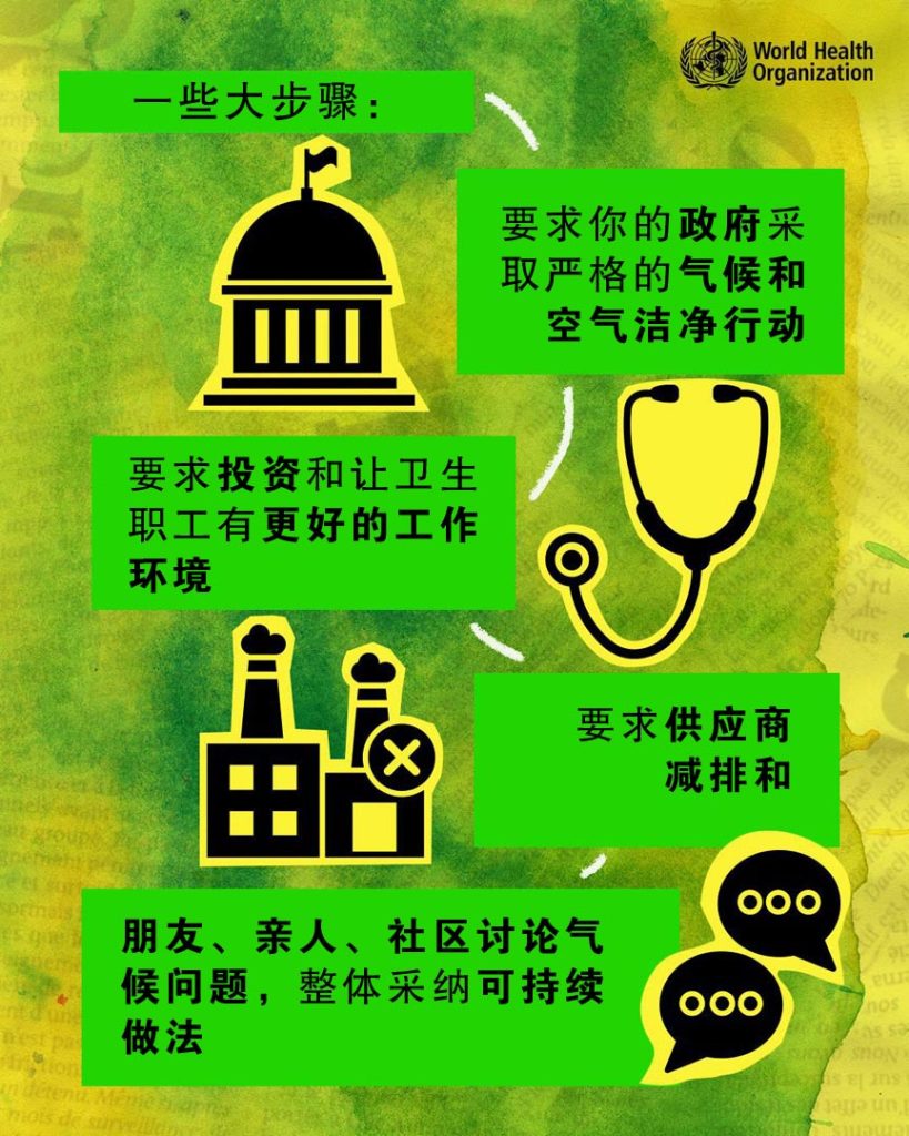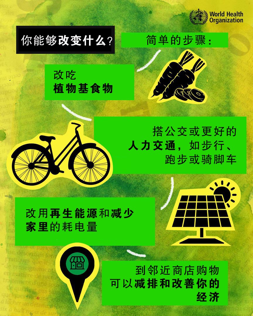 气候危机=健康危机 Mei Cheng 11月 28, 2025 0 Comments 气候危机就是健康危机,而我们每个人都有行动的力量。 > 选择干净的交通 >尝试植物基饮食 > 在附近购物 > 呼吁政府保障空气干净和采用精明的气候政策 > 针对气候变化发声 > 要求供应商减排 每一项气候行动都是很重要的。 来源:世界卫生组织